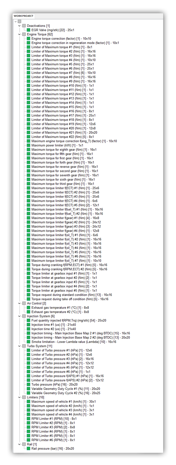 Torque monitoring maps: Particularly relevant in Ford management strategies, these maps allow intervention on the torque monitoring logic managed by the ECU, ensuring consistency between engine demand and electronic control.