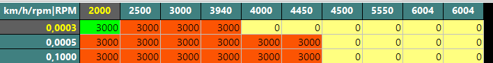 The engine speed axis must be configured with closely spaced steps around the intervention thresholds.